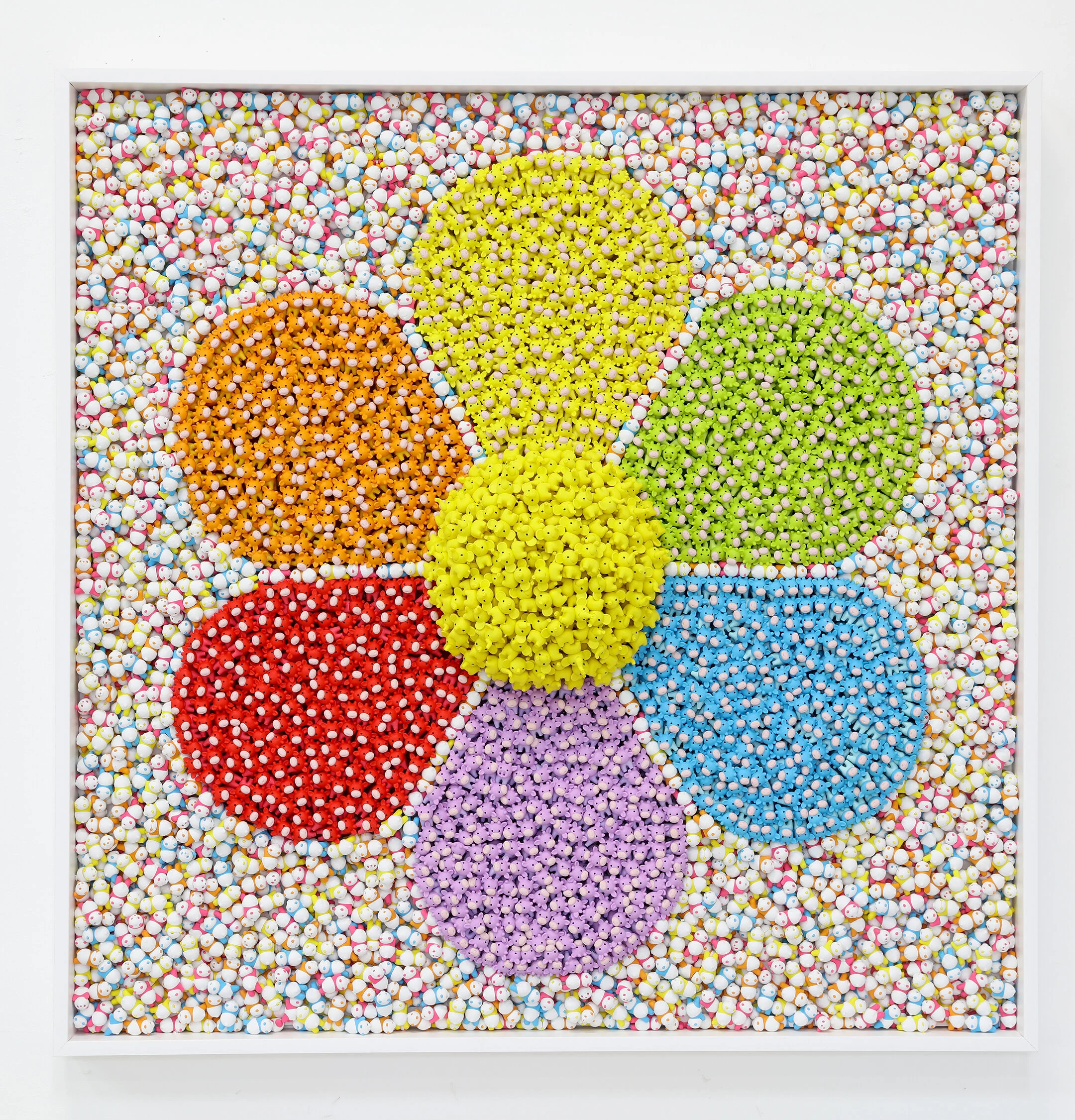 This series of works are related to “Blooming”. Using a figurative object such as erasers I aim to create an abstract form that for association represents to our consciousness a vision of a world. In this “world” there aren’t borders that limit us from each other. In this world, we are all together with a sense of freedom and harmony in which we express throughout the combination of colors we witness in nature. In these worlds, there is unity amongst all living creature of these planets. Nature and the people, becomes one, breaking the concept that Mother Nature is at the disposition and use for us humans, under our control. My goal is to end this feeling of entitlement that we have towards nature, so we can start seeing it as part of us rather than something outside ourselves.